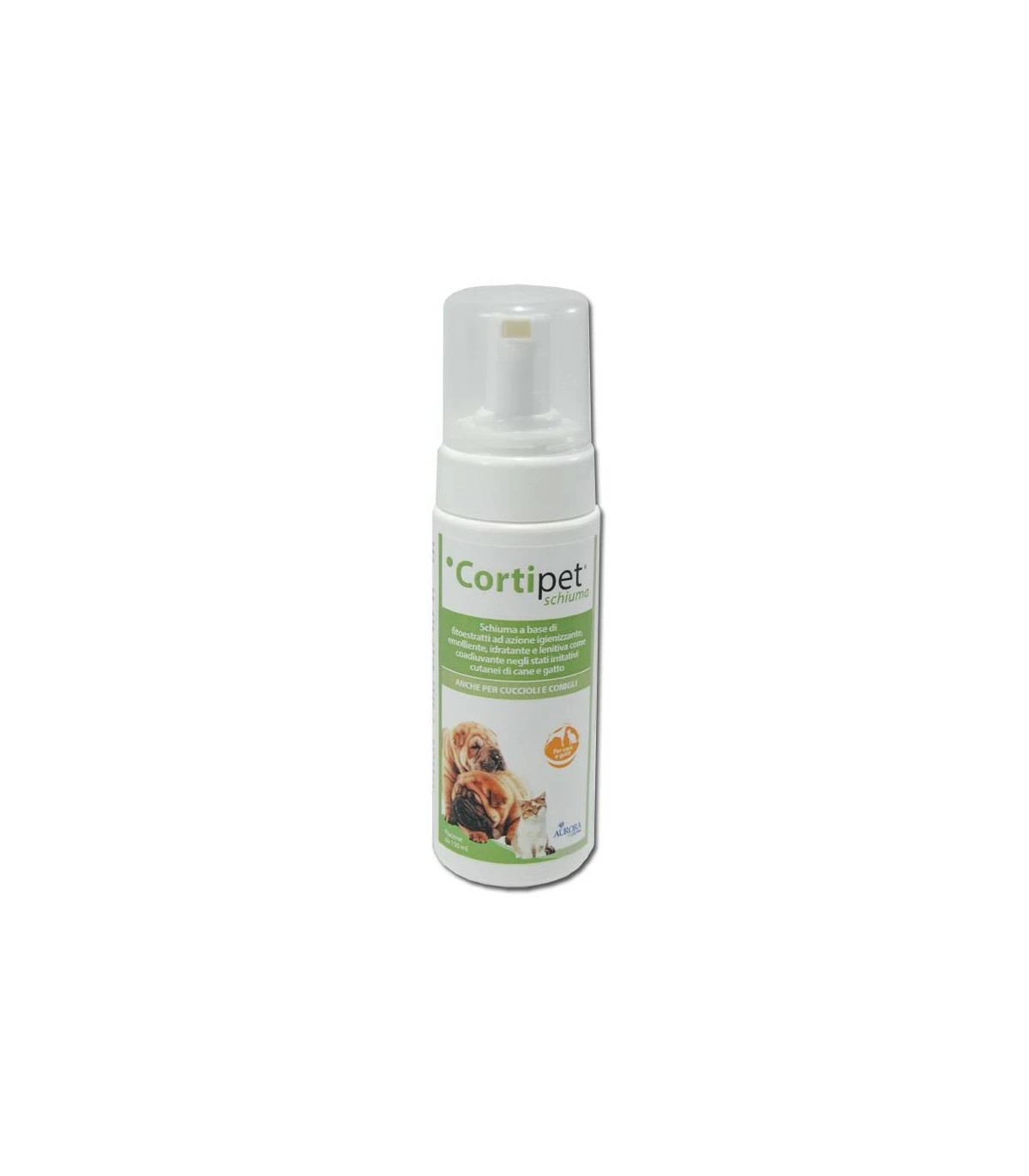 Aurora biofarma cortipet schiuma 150 ml è una schiuma dermatologica lenitiva, idratante ed emolliente grazie alla presenza di Oli di Borragine, Enotera, Ribes nero e fitoestratti di Calendula, Tea Tree Oil, Aloe ed estratto di Semi di Pompelmo
