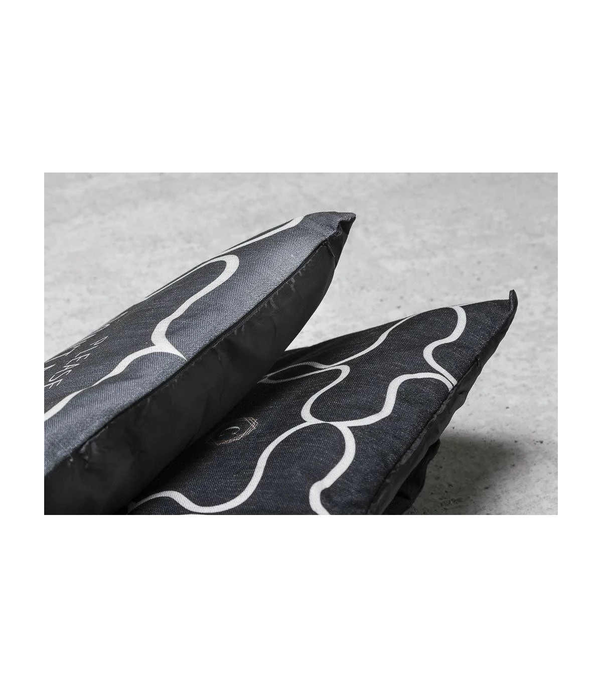 Il cuscino è completamente lavabile e sfoderabile, e double faces: un lato è in misto cotone stampato ed un lato è in poliestere lavabile, ideale per i momenti in cui il cane è più bagnato o sporco. Il cuscino è disponibile a scelta in due diverse fantasie, nei colori grigio o nero.