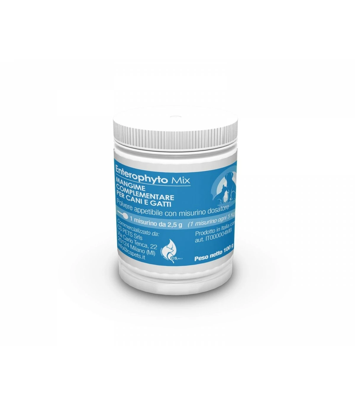 Barattolo da 100 g in pet riciclabile con all’interno un pratico misurino dosatore.