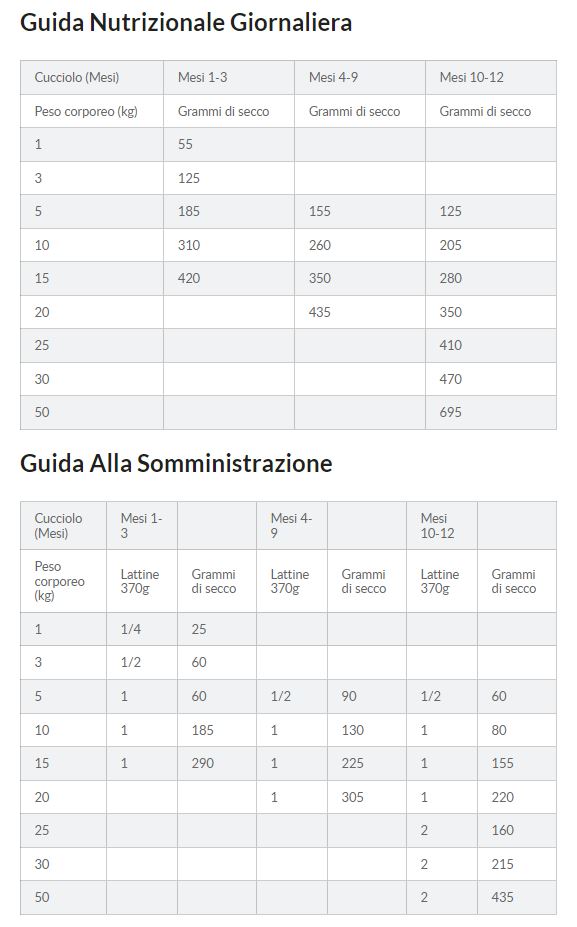 Cuccioli fino a 1 anno di età e per cani in gravidanza o allattamento