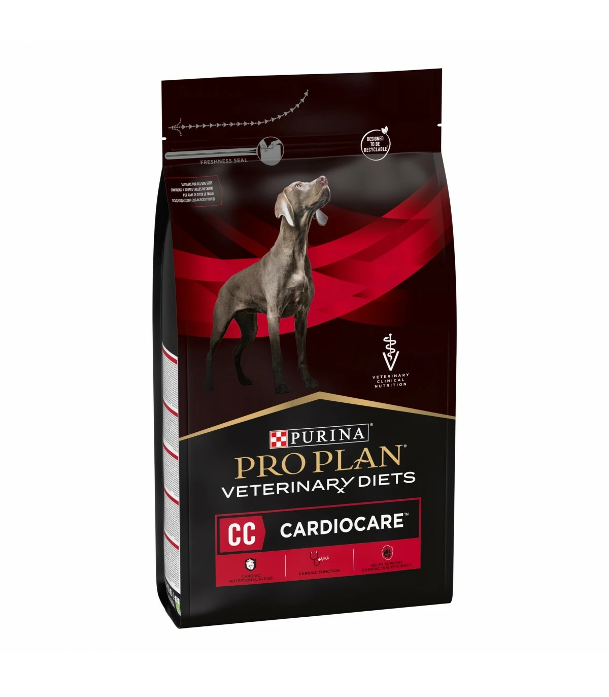 Alimento dietetico completo per cani adulti per il supporto alla funzione cardiaca in caso di insufficienza cardiaca cronica grazie ad un ridotto tenore di sodio.