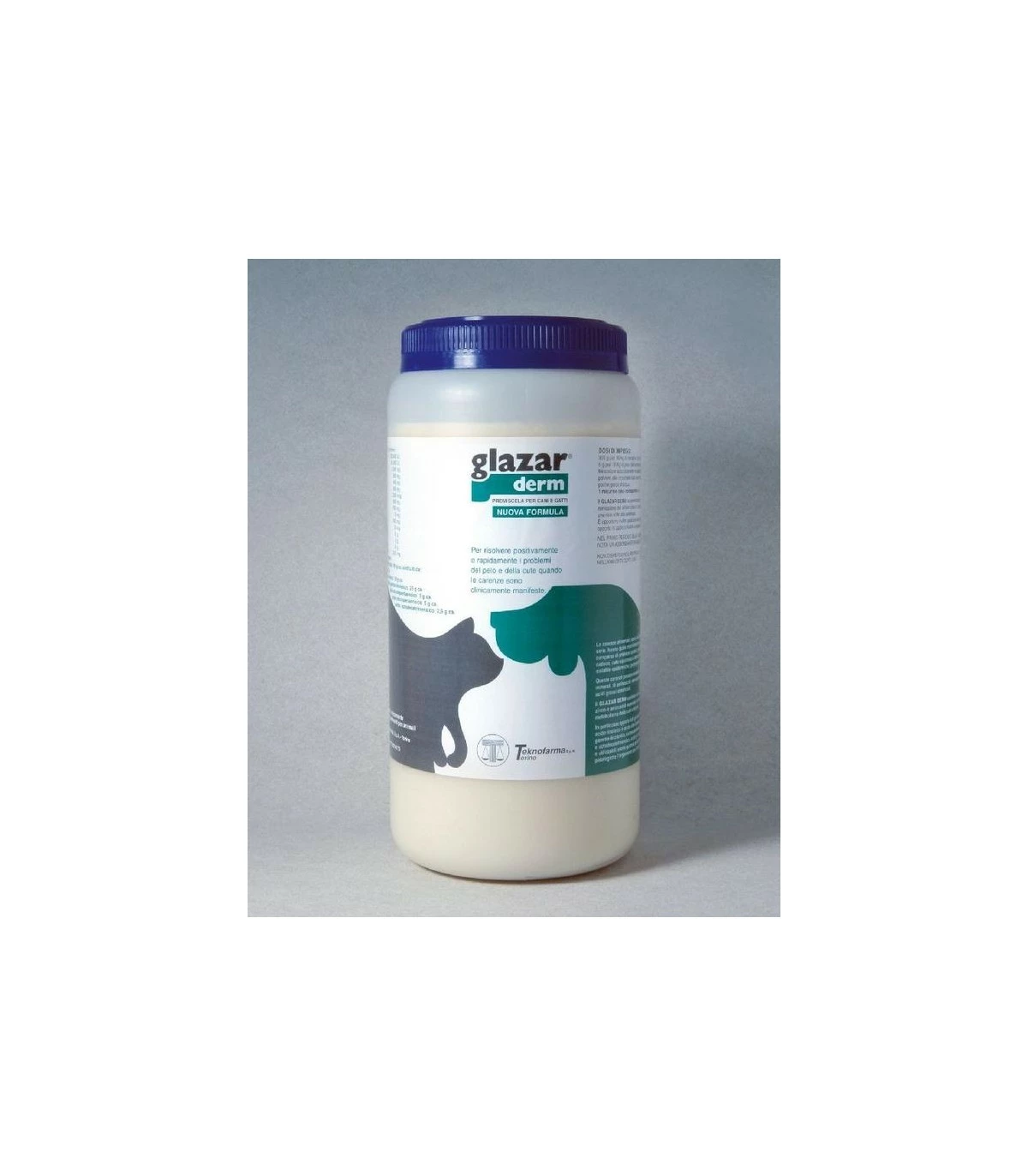 Teknofarma glazar derm nf 500 gr è un mangime complementare. Acidi grassi essenziali ω3 e ω6, Zinco, Biotina, Aminoacidi solforati, Vitamine.