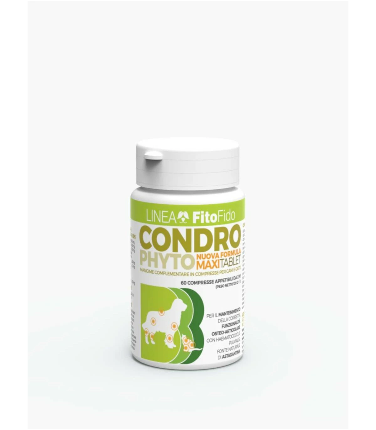 CONDROPHYTO MAXI TABLETS è un mangime complementare specificatamente studiato per mantenere la corretta funzionalità osteo-articolare nell’animale anziano o soggetto ad intensa attività motoria. Il prodotto contiene glucosamina solfato e condroitin solfato per un integrazione di sostegno al normale trofismo cartilagineo, MSM-metil sulfonil metano ed haematococcus pluvialis, fonte naturale di astaxantina.